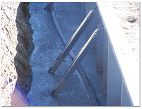 Step 4.Pouring of the concrete bond beam and pool floor. The bond beam surrounds the outside of the pool walls and the braces, and holds everything in place, nice and tight. The pool floor is poured precisely so that the liner will fit like a glove.